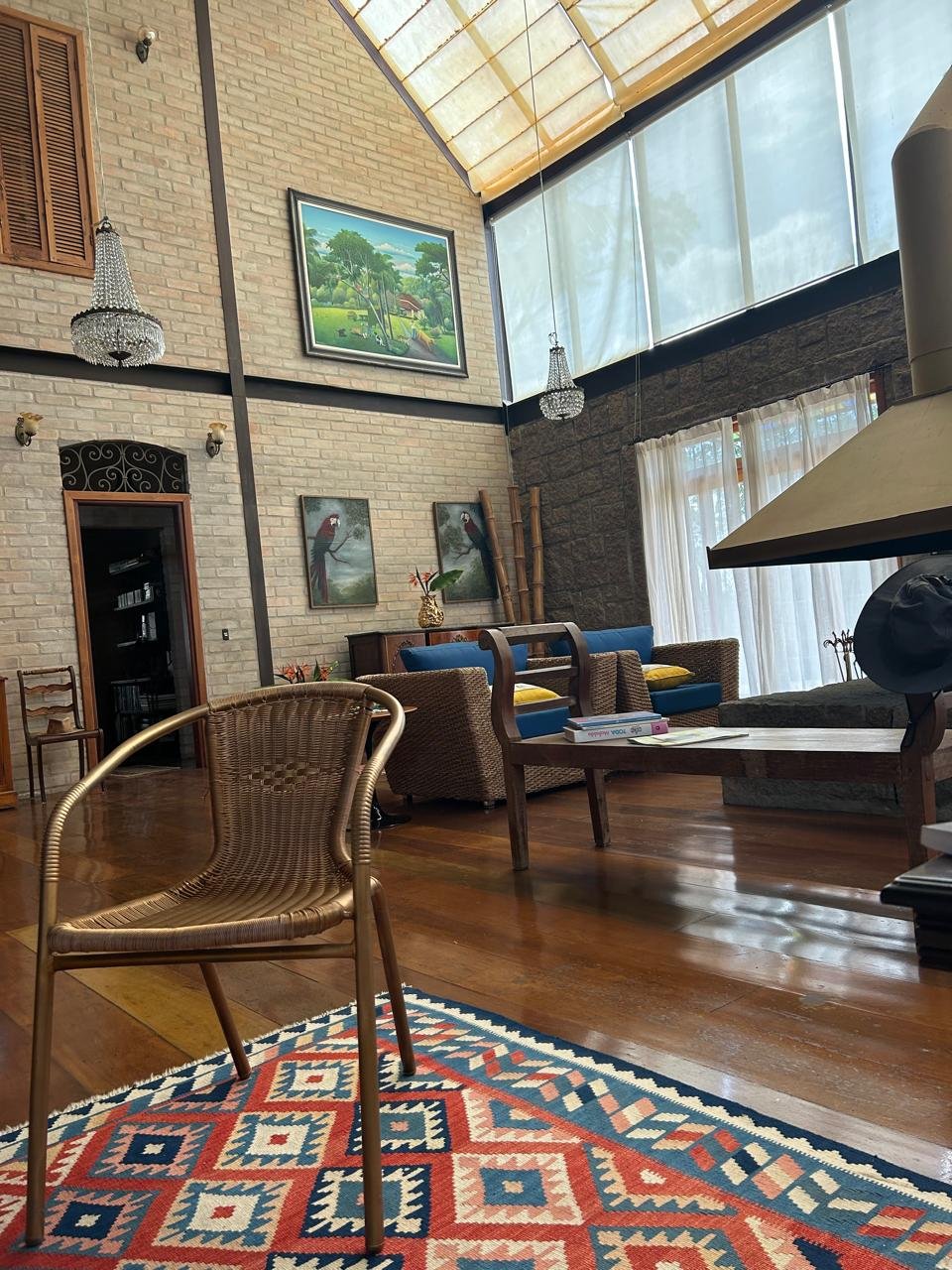 - Um salão para palestras com lareira