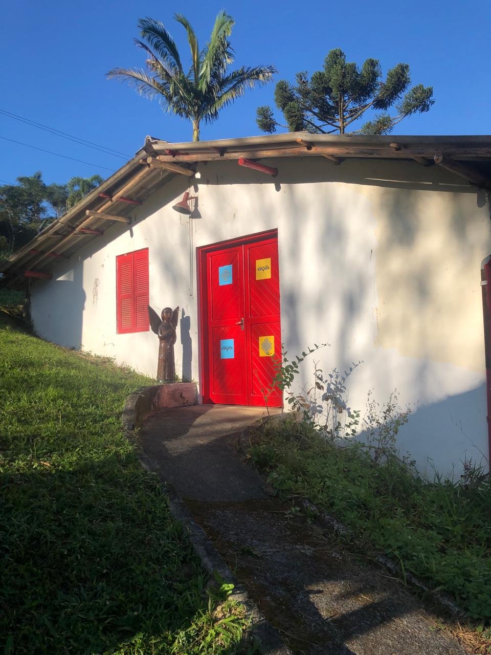 - Escada de concreto que dá acesso a casa principal no topo da colina