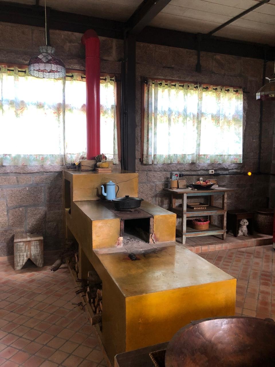 - Aquecimento de água das casas com serpentina do fogão à lenha
