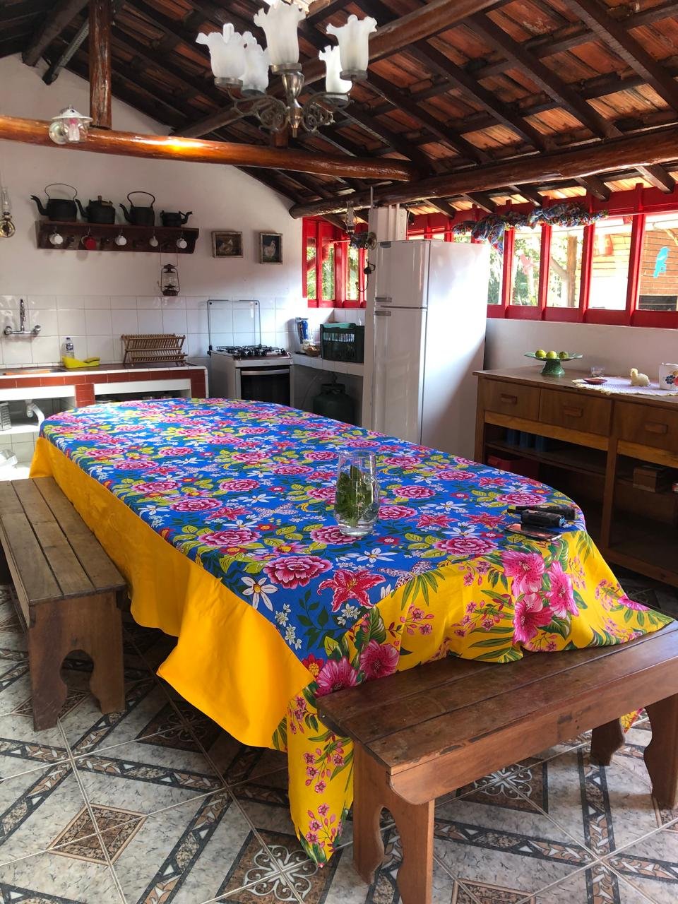 - Área para churrasco com mesas e cadeiras casa superior