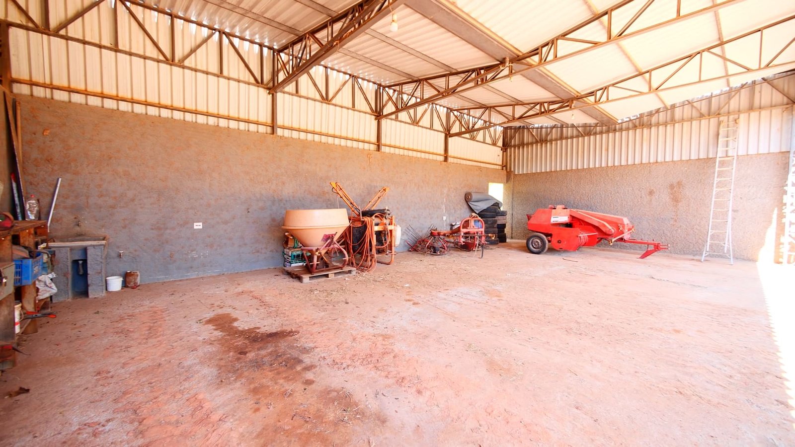 Garagem ampla para tratores e implementos