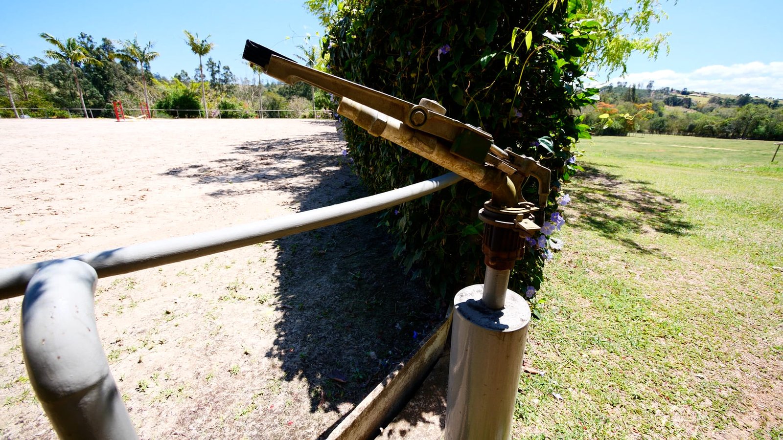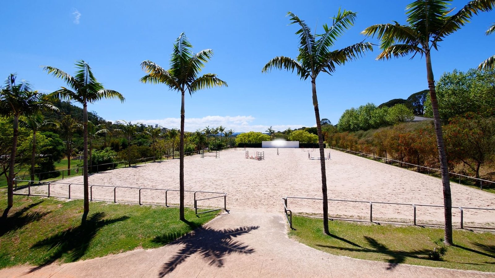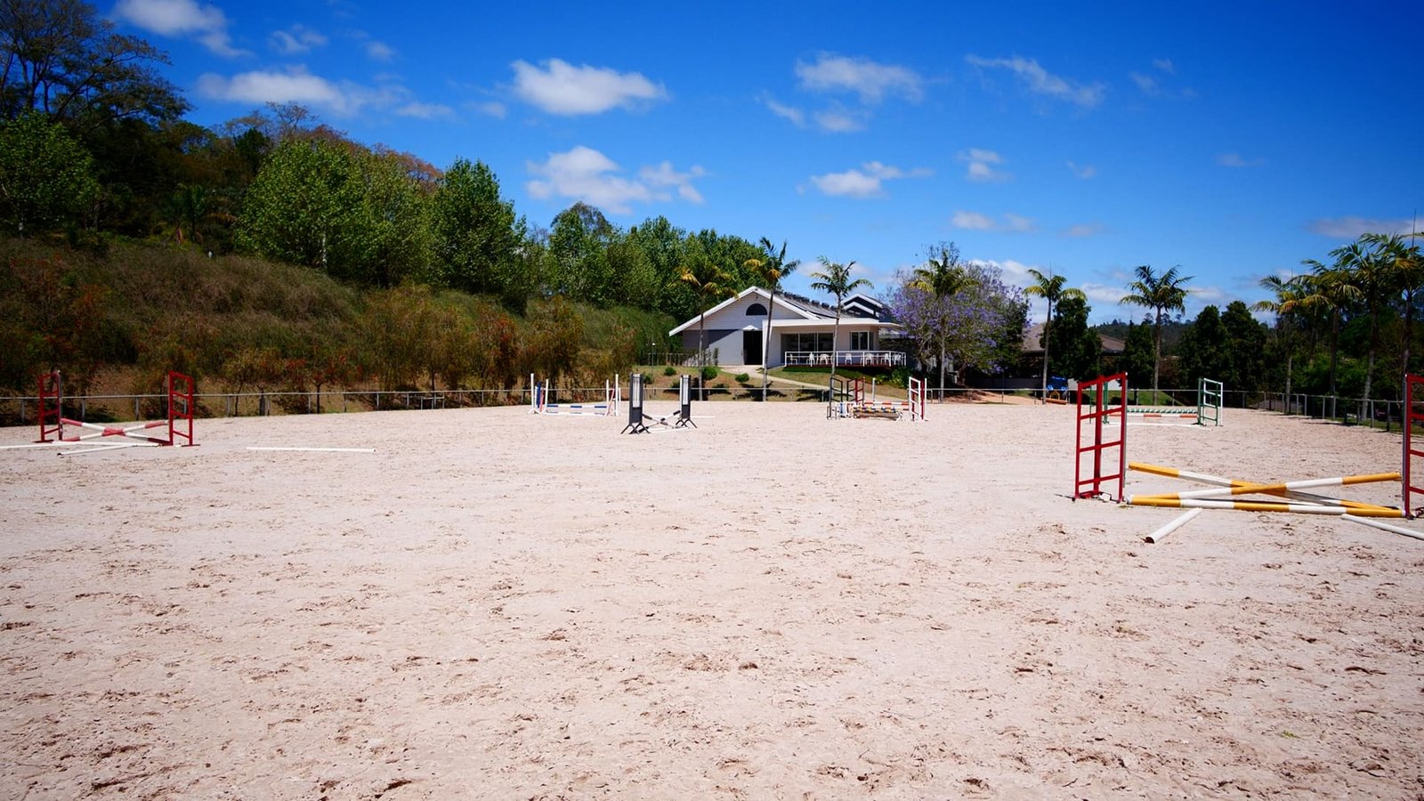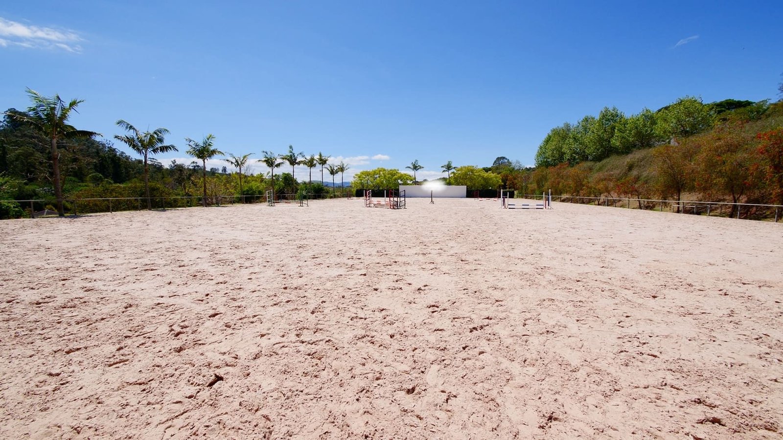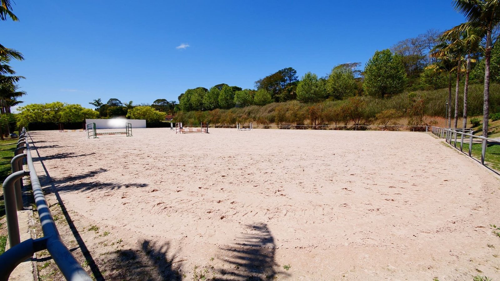 Pista de salto descoberta: 3.300 m² (44 x 77 m), irrigada e de alta performance.