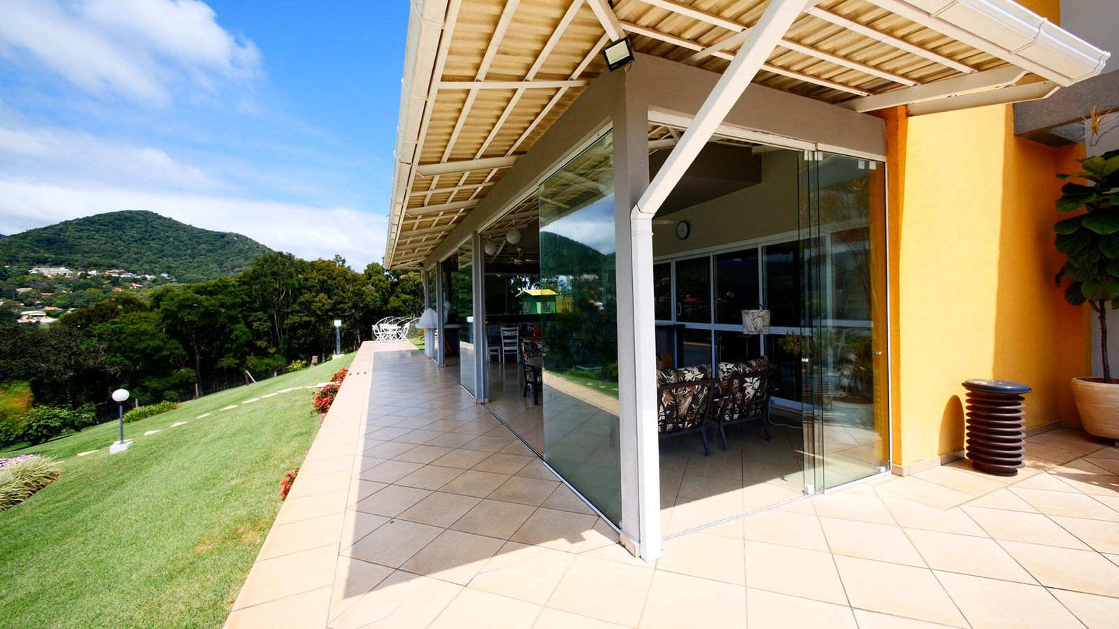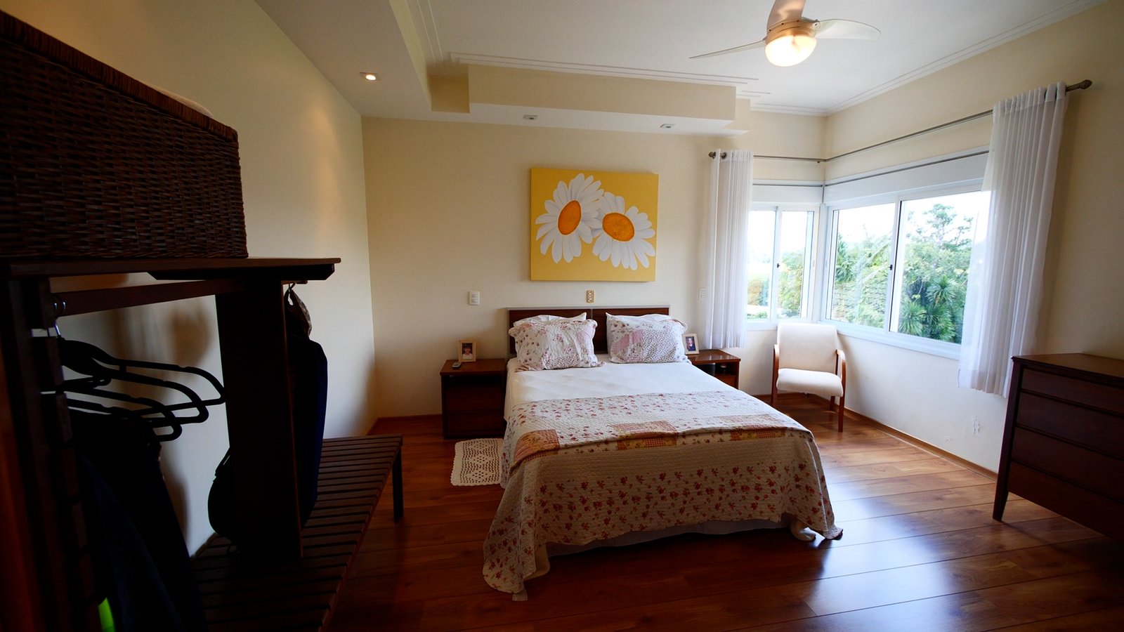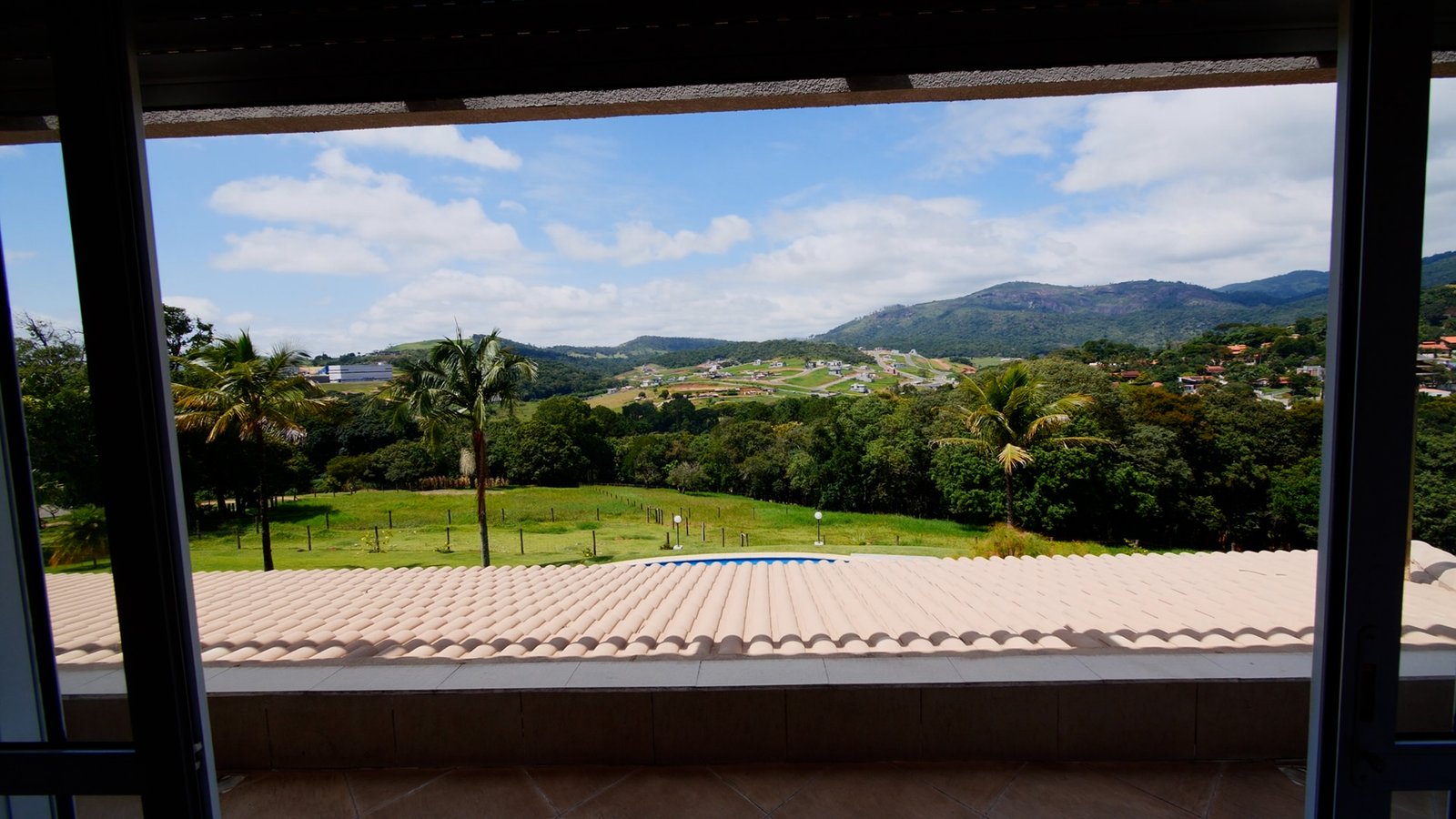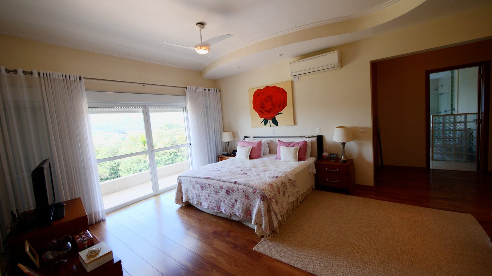 A suíte master possui varanda e vista para as montanhas.
