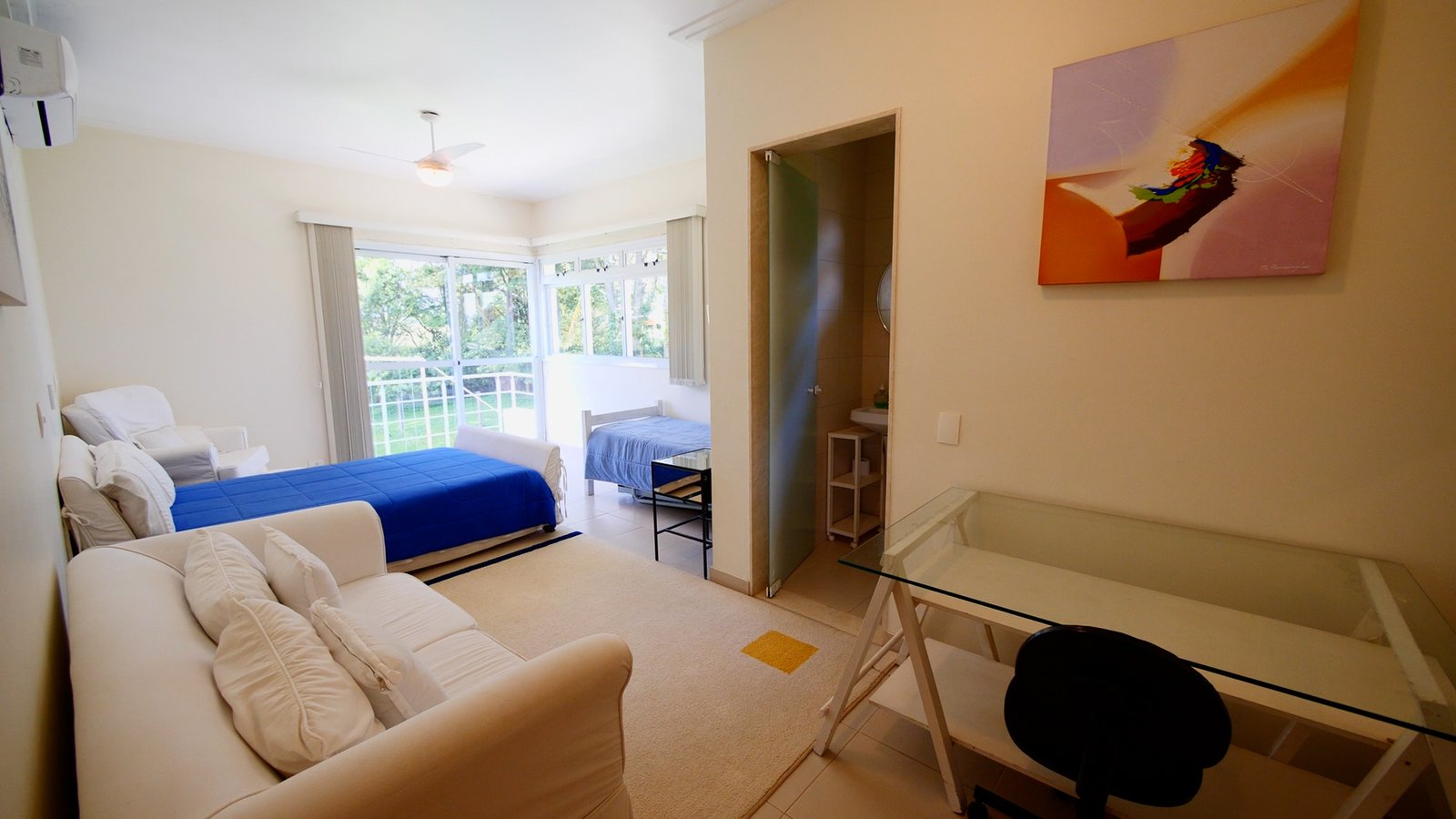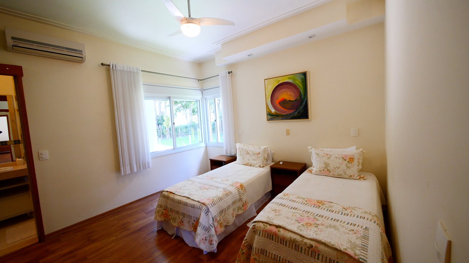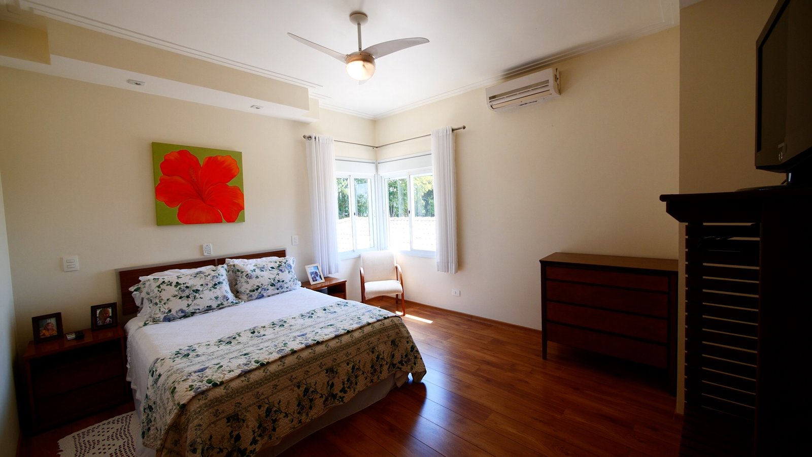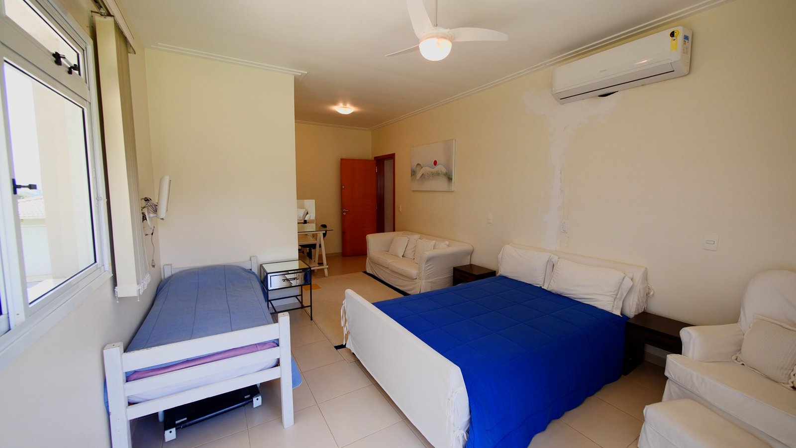 A casa esta totalmente mobiliada e possui ar condicionado nas suítes superiores.