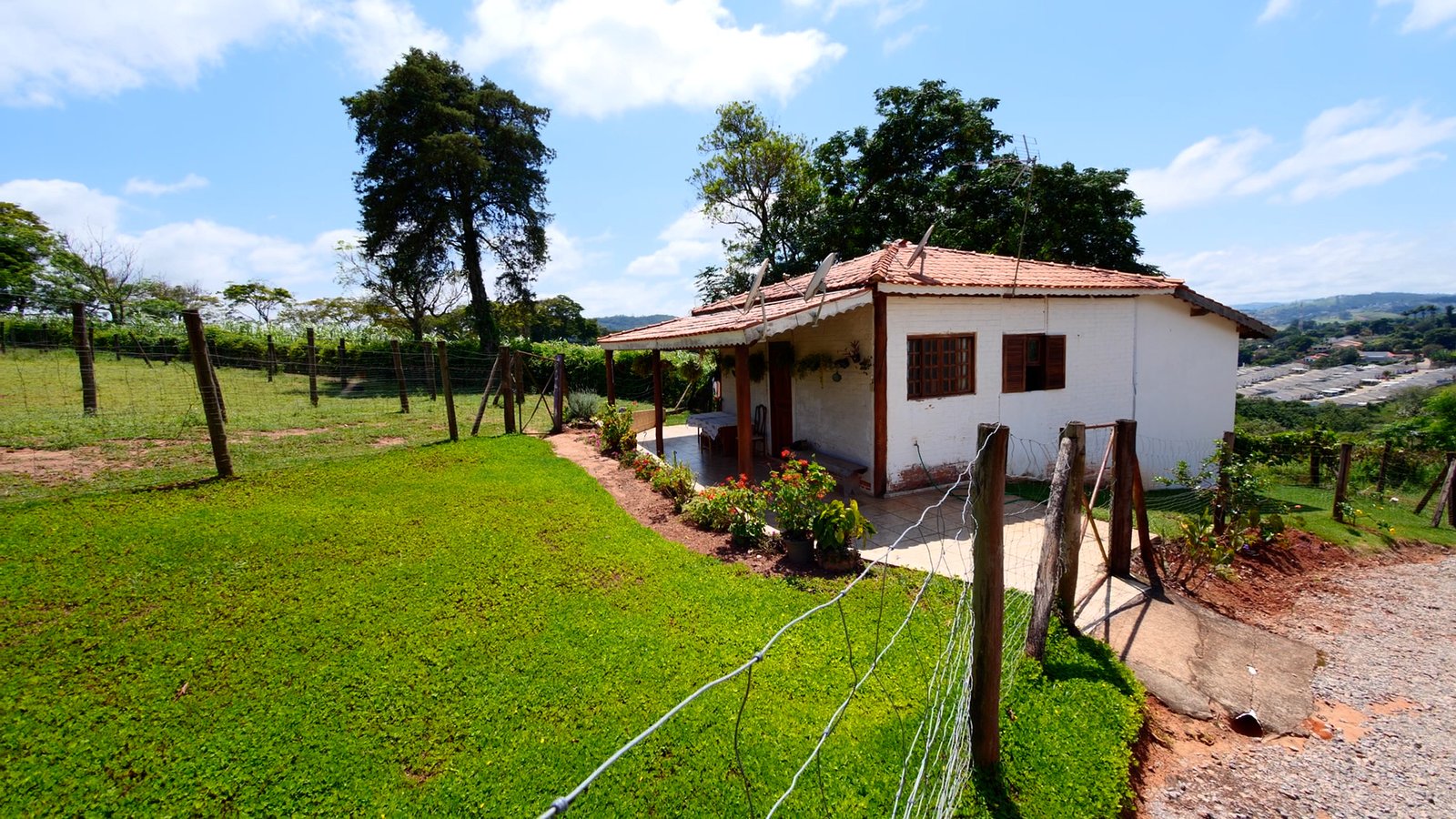 Casa de caseiro: 2 dormitorios, sala, cozinha e banheiros.