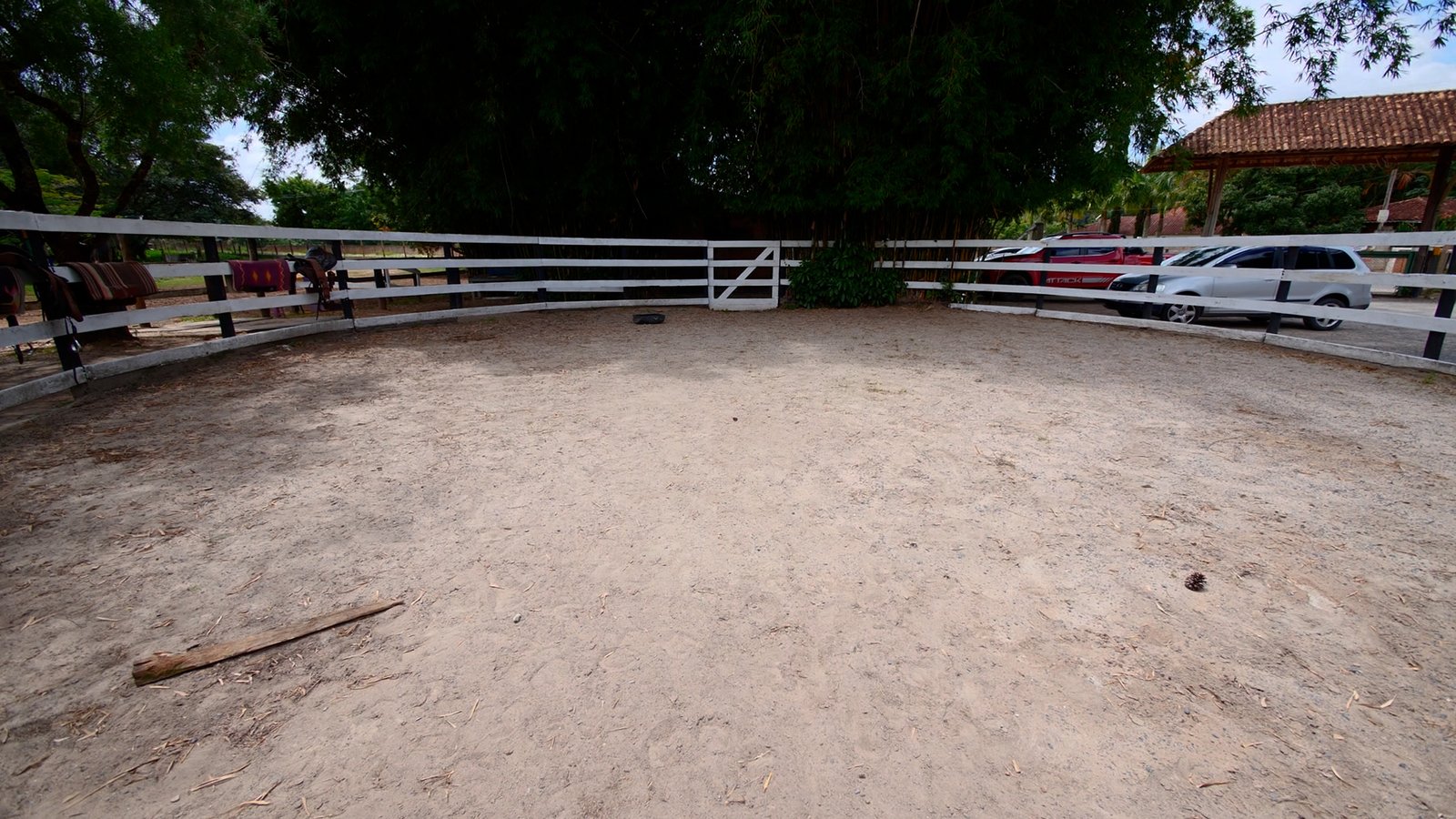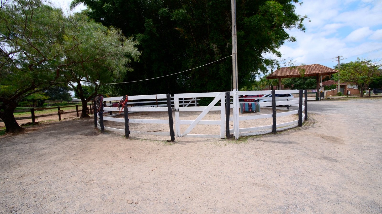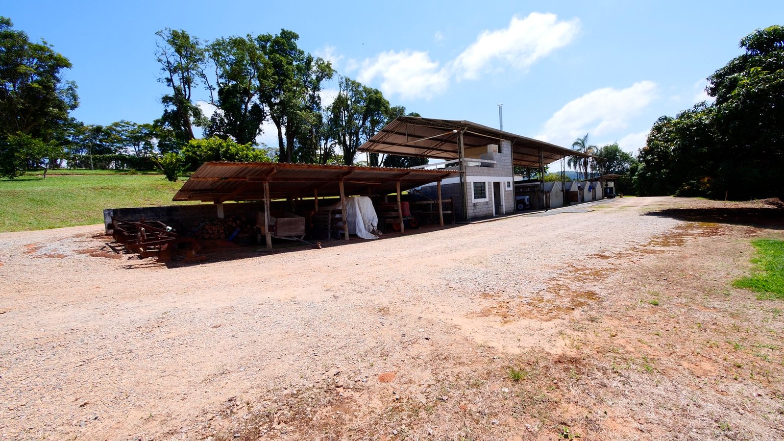 Galpão e mais 4 baias, lago, 3 piquetes.