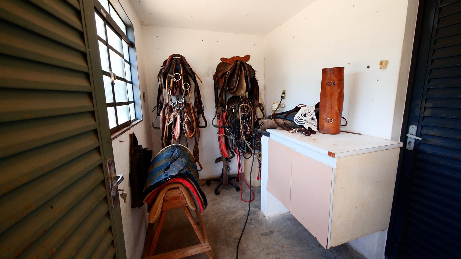 8 Baias, quarto de sela, quarto de ração e banheiro.